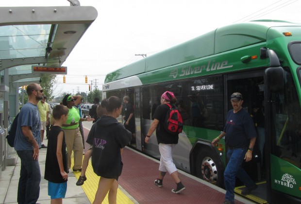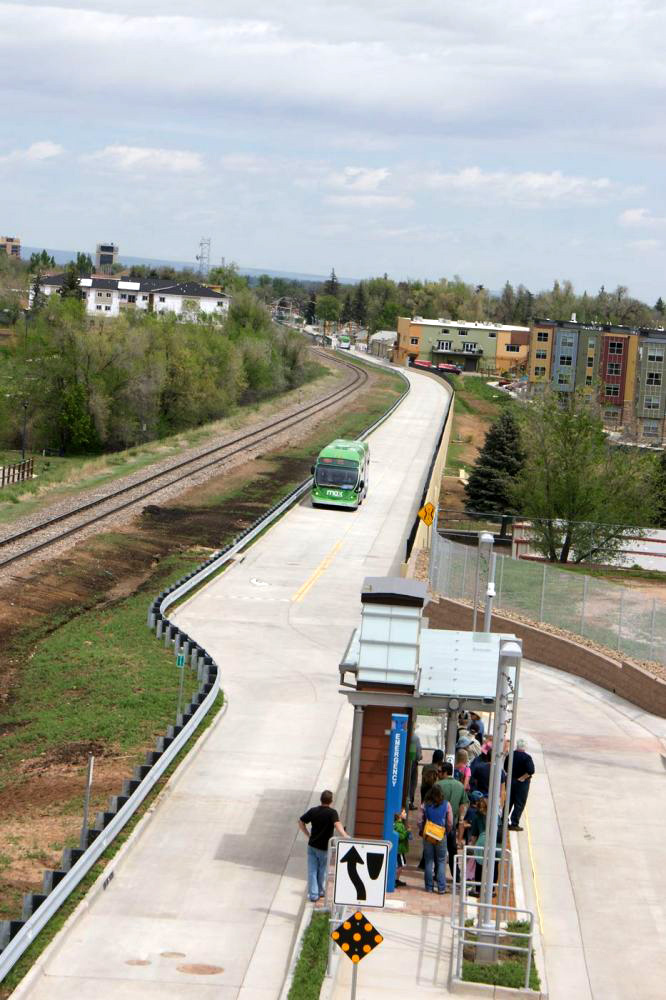Bus Rapid Transit (BRT) is a high-quality bus system that aims to provide faster, more reliable, and more convenient transportation than traditional bus service. BRT systems often include elements of light rail, such as stations, dedicated bus lanes, and priority at intersections. Since BRT utilizes rubber tire vehicles along existing corridors, BRT provides a wide range of options for implementation. Like LRT, BRT can be constructed in a dedicated right-of-way; but BRT can also be applied within or immediately adjacent to existing corridors, enhancing roadway function with a mix of dedicated bus lanes, managed lanes, transit signal priority, and queue jump treatments that can provide improved operating capabilities at a significantly reduced cost and implementation time frame.